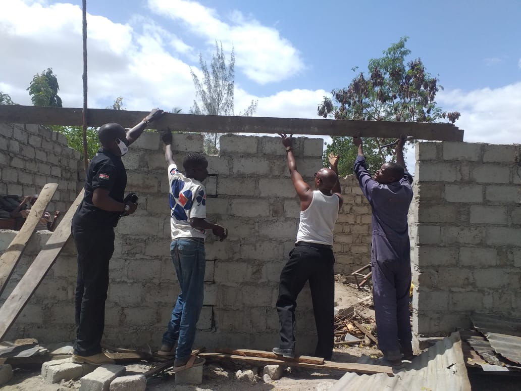 Amani Kenya initiative Constructing a three rooms house for a disabled man, James Mwadzuya and his family in Kilifi County. Touching life, touching community. A voice of reasoning. Congrats to James Mwadzuya a father of seven children. James Mwadzuya is a disabled man and through Amani Kenya youth empowerment organization N.G.O changed the living standard of James. Glory to God